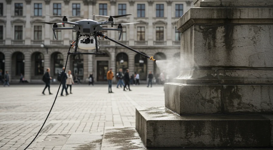 Les collectivités locales et les administrations sont confrontées à de nombreux défis en matière d’entretien des espaces publics. Qu’il s’agisse du nettoyage de monuments, de mobiliers urbains, de routes ou de façades de bâtiments, les méthodes traditionnelles peuvent être coûteuses, chronophages et dangereuses. Grâce aux drones, ces opérations peuvent être réalisées avec une rapidité et une précision inégalées. Les drones de nettoyage sont capables d’intervenir sur de vastes zones en un minimum de temps, réduisant ainsi l’impact sur les usagers et limitant les perturbations dans l’espace public. Leur maniabilité permet d’atteindre facilement des endroits difficiles d’accès, comme les toitures d’édifices historiques ou les ponts, sans nécessiter de gros dispositifs logistiques.